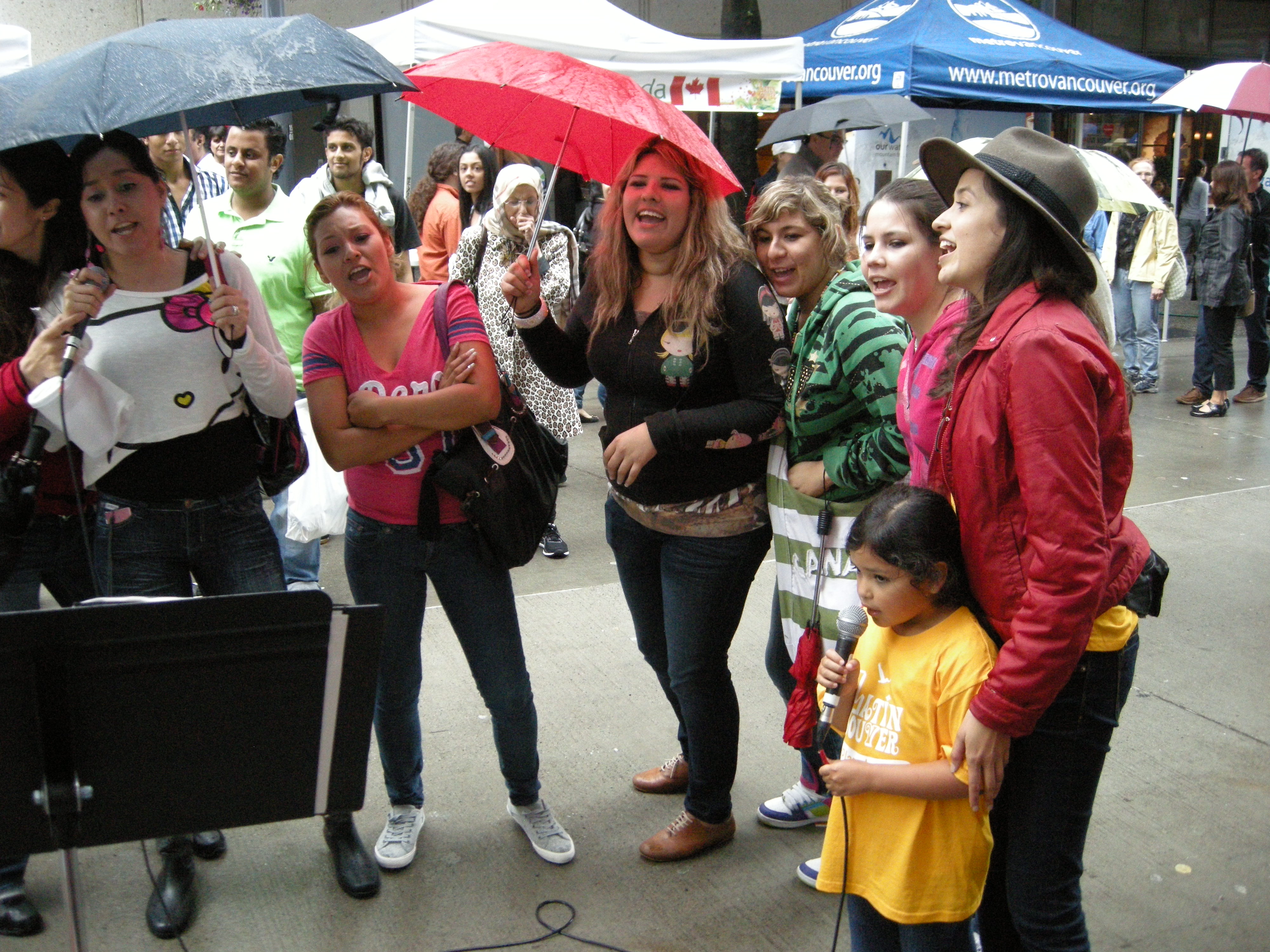 Our team, “Habla Español with Latincouver” shined at Granville Street while singing well known hits like: “La Bamba”, “Macarena”, and traditional songs for kids. The Latino Community participated eagerly, and even performed the “Macarena coreography” in the middle of the street!